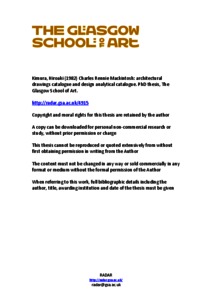 Charles Rennie Mackintosh: architectural drawings catalogue and design analytical catalogueKimura, Hiroaki (1982) Charles Rennie Mackintosh: architectural drawings catalogue and design analytical catalogue. PhD thesis, The Glasgow School of Art. |