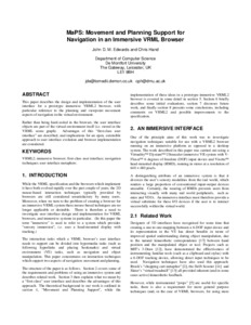 Edwards, John D.M. and Hand, Chris (1997) MaPS: Movement and planning support for navigation in an immersive VRML browser. In: VRML '97: Proceedings of the second symposium on Virtual reality modeling language, 24-26 Feb 1997, Monterey, California.