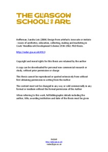 Design from artefacts: innovate or imitate - issues of aesthetics, education, collecting, making and marketing in Coats' Needlework Development Scheme 1934-1962Heffernan, Sandra Lois (2004) Design from artefacts: innovate or imitate - issues of aesthetics, education, collecting, making and marketing in Coats' Needlework Development Scheme 1934-1962. PhD thesis, The Glasgow School of Art. |