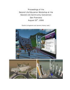 Proceedings of the Second Life Education Workshop at the Second Life Community ConventionLivingstone, Daniel and Kemp, Jeremy, eds. (2006) Proceedings of the Second Life Education Workshop at the Second Life Community Convention. Second Life Education Workshop, San Francisco. ISBN 1-903978-32-7 |
