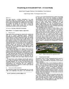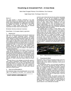 Visualising an Amusement Park - A Case StudyNaef, Martin, Pritchard, Douglas, McMahon, Chris and Anderson, P. (2008) Visualising an Amusement Park - A Case Study. In: IEEE Virtual Reality 2008 Workshop on Virtual Cityscapes, 8-9 March 2008, Reno, NV, USA. |