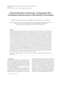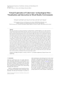 Virtual Exploration of Underwater Archaeological Sites: Visualization and Interaction in Mixed Reality EnvironmentsChapman, Paul, Roussel, David, Drap, Pierre and Haydar, Mohamed (2008) Virtual Exploration of Underwater Archaeological Sites: Visualization and Interaction in Mixed Reality Environments. In: The 9th International Symposium on Virtual Reality, Archaeology and Cultural Heritage, Braga, Portugal. |