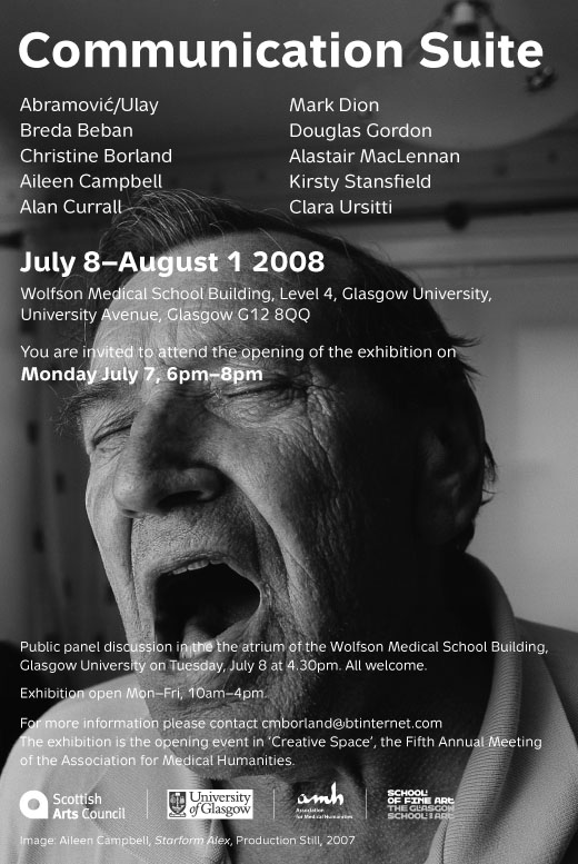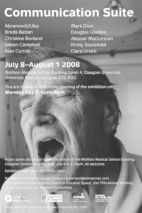 Communication SuiteCurrall, Alan (2008) Communication Suite. Wolfson Medical Building, University of Glasgow, 8 July - 1 August 2008 [Show/Exhibition] |