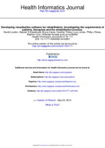 Taylor, Andrea (2012) The Opportunity and Challenges for Delivering Group-Based Rehabilitation Services to the Home via Digital Television. In: IADIS e-Health 2012 (EH 2012), 17–19 Jul 2012, Lisbon, Portugal.