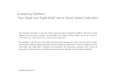 Bremner, Elaine (2012) Surpassing Tradition: ‘Four-Shaft’ and ‘Eight-Shaft’ Harris Tweed Textile Collections. [Artefact]