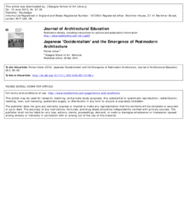 Urban, Florian (2012) Japanese Occidentalism and the Emergence of Postmodern Architecture. Journal of Architectural Education, 65 (2). pp. 89-102. ISSN 1046-4883