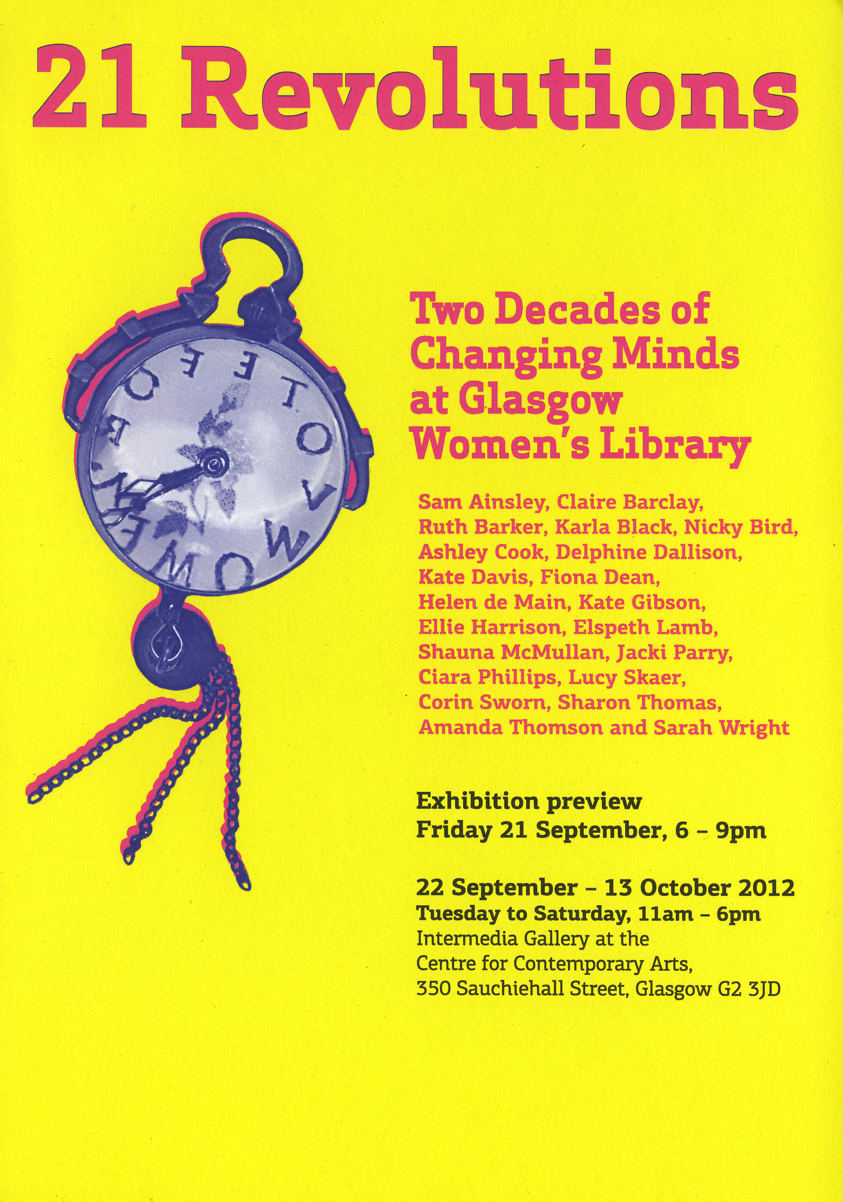 Thomson, Amanda (2012) 21 Revolutions, Two Decades of Changing Minds at Glasgow Women's Library. Centre for Contemporary Art, Glasgow, September 2012 [Show/Exhibition]