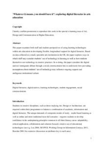 ‘Whatever it means, you should have it’: Exploring digital literacies in arts education