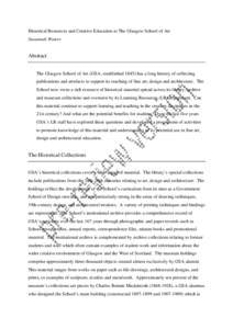 Waters, Susannah (2012) Historical Resources and Creative Education at Glasgow School of Art. Art Libraries Journal (ALJ), 37 (3). pp. 16-20. ISSN 0307 4722