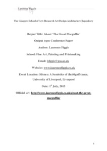 Ursitti, Clara (2015) Spirits in the Material World. In: Material Culture in Action: Practices of making, collecting and re-enacting Art and Design, 7-8 Sep 2015, The Glasgow School of Art.