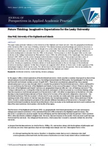 Wall, Gina (2015) Future Thinking: Imaginative Expectations for the Leaky University. Journal of Perspectives in Applied Academic Practice, 3 (1). pp. 6-10. ISSN 2051-9788