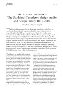 Interwoven connections: The Stoddard-Templeton design studio and design library 1843-2005Britt, Helena and Chappell, Duncan (2016) Interwoven connections: The Stoddard-Templeton design studio and design library 1843-2005. Art Libraries Journal (ALJ), 39 (3). pp. 14-19. ISSN 0307-4722 |