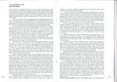 Whereabouts you areBiró, Eszter, Butler, Jacqueline, Calvo, Mirian, Bento Coelho, Inês, Keehan, Allyson, MacLellan, Fiona Jane, Weir, Catherine M., Worsley, Dawn, Makki Zakari, Hanan, Zioga, Polina and Checchia, Viviana (2016) Whereabouts you are. Reid Gallery, Glasgow School of Art, UK, 15 Oct – 10 Nov 2016 [Show/Exhibition] |