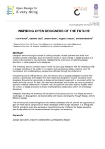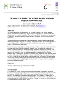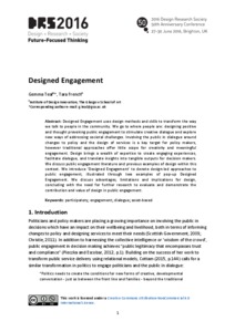 Designed EngagementTeal, Gemma and French, Tara (2016) Designed Engagement. In: 2016 Design Research Society 50th Anniversary Conference, 27 - 30 Jun 2016, Brighton, UK. |