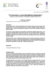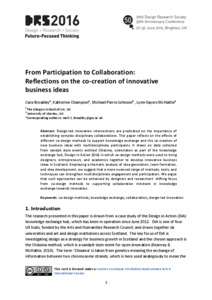 From Participation to Collaboration: Reflections on the Co-Creation of Innovative Business IdeasBroadley, Cara, Champion, Katherine, Johnson, Michael and McHattie, Lynn-Sayers (2016) From Participation to Collaboration: Reflections on the Co-Creation of Innovative Business Ideas. In: The 50th Anniversary DRS Conference 2016, Future-Focused Thinking, 27-30 Jun 2016, Brighton, UK. |