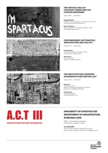 A.C.T.III Symposium - Contemporary art practice, art and the cityBrown, Katrina (2016) A.C.T.III Symposium - Contemporary art practice, art and the city. In: A.C.T. III - Architecture, Culture, Technology Symposium, 11 Feb 2016, Department of Architecture, University of Strathclyde, UK. |