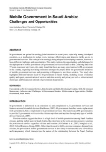Mobile Government in Saudi Arabia: Challenges and OpportunitiesAlssbaiheen, Anan and Love, Steve (2016) Mobile Government in Saudi Arabia: Challenges and Opportunities. International Journal of Mobile Human Computer Interaction, 8 (3). pp. 18-37. ISSN 1942-390X |