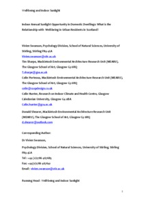 Indoor Annual Sunlight Opportunity in Domestic Dwellings May Predict Well-Being in Urban Residents in ScotlandSwanson, Vivien, Sharpe, Tim, Porteous, Colin, Hunter, Colin and Shearer, Donald (2016) Indoor Annual Sunlight Opportunity in Domestic Dwellings May Predict Well-Being in Urban Residents in Scotland. Ecopsychology, 8 (2). pp. 121-130. ISSN 1942-9347 |