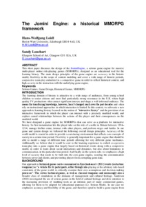 Design and Implementation of the Jomini Engine: Towards a Historical Massively Multiplayer Online Role-Playing GameBond, David, Loidl, Hans-Wolfgang and Louchart, Sandy Jean-Jacques (2016) Design and Implementation of the Jomini Engine: Towards a Historical Massively Multiplayer Online Role-Playing Game. Lecture Notes in Computer Science, 9599. pp. 441-451. ISSN 0302-9743 |