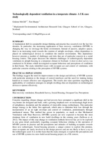 Characteristics and performance of MVHR systems A meta study of MVHR systems used in the Innovate UK Building Performance Evaluation ProgrammeSharpe, Tim, Mawditt, Ian, Gupta, Rajat, McGill, Grainne and Gregg, Mat (2016) Characteristics and performance of MVHR systems A meta study of MVHR systems used in the Innovate UK Building Performance Evaluation Programme. Technical Report. Innovate UK. |