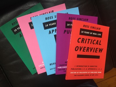 'Ross Sinclair: 20 Years of Real Life' PhD by Published workSinclair, Ross (2016) 'Ross Sinclair: 20 Years of Real Life' PhD by Published work. PhD thesis, The Glasgow School of Art. |