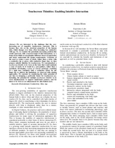 Touchscreen Thimbles: Enabling Intuitive InteractionBriscoe, Gerard and Blom, Jeroen (2016) Touchscreen Thimbles: Enabling Intuitive Interaction. In: SPWID 2016, The Second International Conference on Smart Portable, Wearable, Implantable and Disability-oriented Devices and Systems, 22-26 May 2016, Valencia, Spain. |