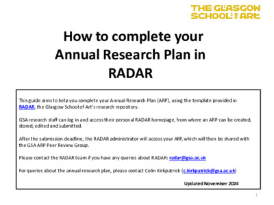 RADAR and Annual Research PlansSiminson, Nicola Jane and Pike, Dawn (2016) RADAR and Annual Research Plans. In: EPrints UK User Group Meeting, 13 May 2016, University of Central Lancashire, Preston, UK. |