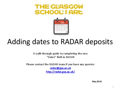 Making the most of what we have got: RADAR and annual research planningSiminson, Nicola Jane (2016) Making the most of what we have got: RADAR and annual research planning. In: Repository Fringe 2016, 1-2 Aug 2016, John McIntyre Conference Centre, Edinburgh, UK. |