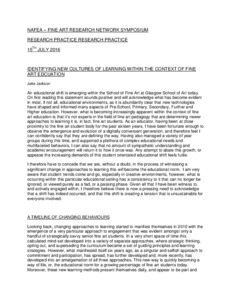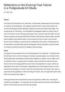 Reflections on the Evolving Triad Tutorial in a Postgraduate Art StudioTripp, Sarah (2016) Reflections on the Evolving Triad Tutorial in a Postgraduate Art Studio. International Journal of Art and Design Education, 35 (3). pp. 384-394. ISSN 1476-8070 |