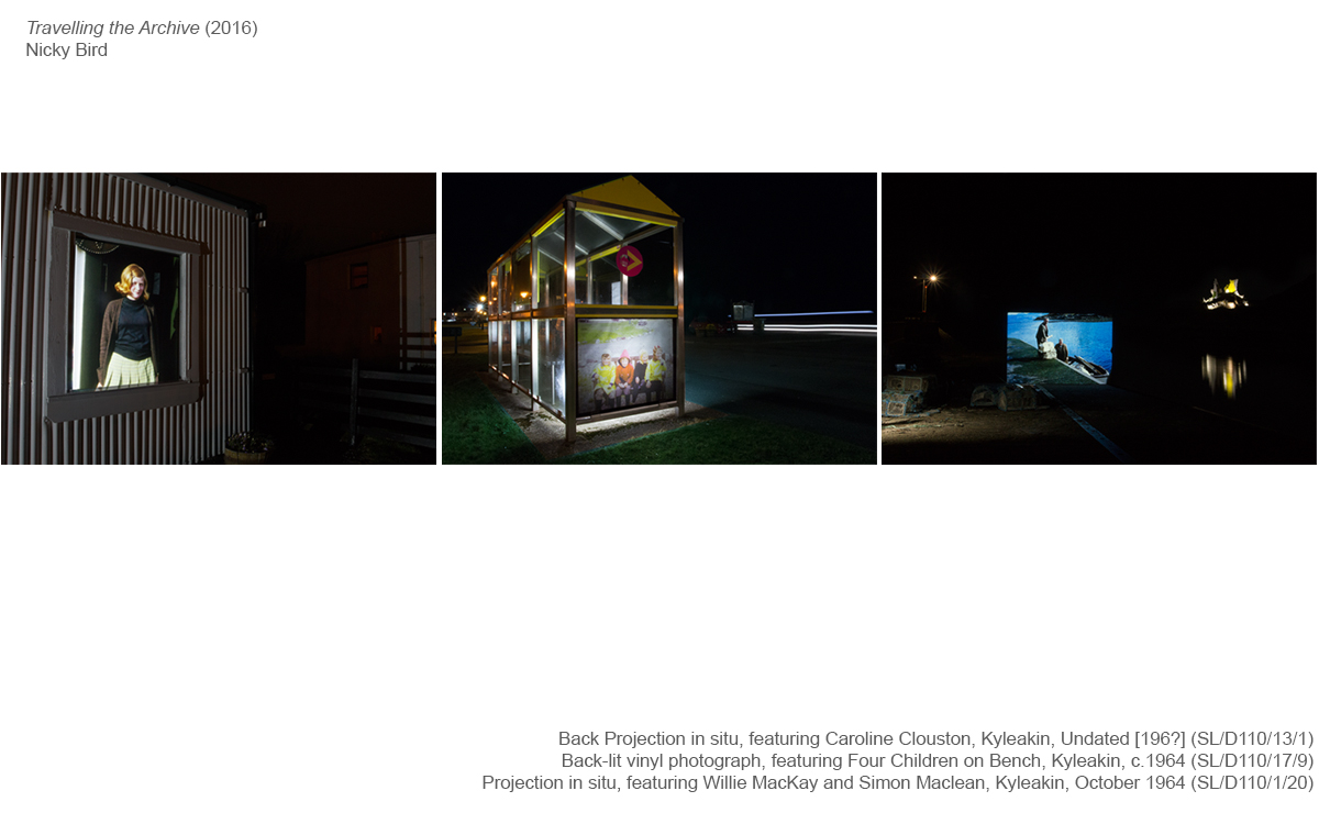 Travelling the Archive, 2016Bird, Nicky (2016) Travelling the Archive, 2016. Kyleakin, Isle of Skye, Scotland, 17 March - 10 September 2016 [Show/Exhibition] |