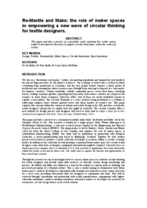 Re-Mantle and Make: the role of maker spaces in empowering a new wave of circular thinking for textile designers.Smith, Paul, McHattie, Lynn-Sayers and Ballie, Jen (2016) Re-Mantle and Make: the role of maker spaces in empowering a new wave of circular thinking for textile designers. In: Circular Transitions: Mistra Future Fashion Conference on Textile Design and the Circular Economy, 23–24 November 2016, Chelsea College of Arts & Tate Britain, London. |
