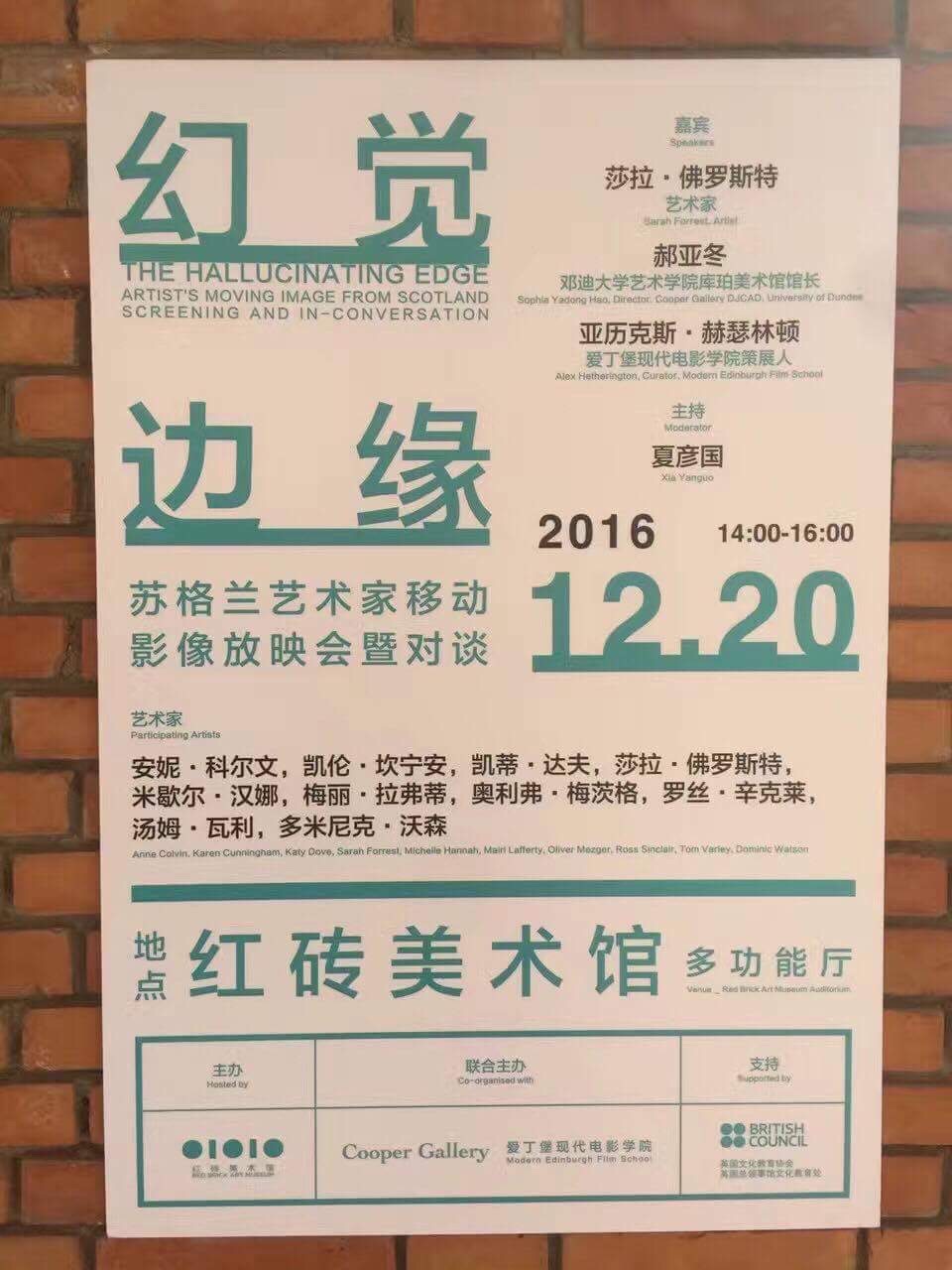 The Hallucinating Edge: Artist's Moving Image from ScotlandSinclair, Ross, Colvin, Anne, Cunningham, Karen, Dove, Katy, Forrest, Sarah, Hannah, Michelle, Lafferty, Mairi, Mezger, Oliver, Varley, Tom and Watson, Dominic (2016) The Hallucinating Edge: Artist's Moving Image from Scotland. Red Brick Art Museum, Beijing, China, December 2016 [Show/Exhibition] |