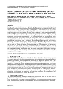 Developing concepts that promote energy saving technology for ageing populationsWhittet, Craig, Taylor, Andrea, Walker, Guy, Galloway, Stuart, Stephen, Bruce, Docherty, Catherine, Lynn, Craig, Owens, Eddie and Danson, Michael (2016) Developing concepts that promote energy saving technology for ageing populations. In: International Conference on Engineering and Product Design Education, 8-9 September 2016, Aalborg, Denmark. |