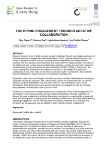 Fostering Engagement Through Creative CollaborationTeal, Gemma, French, Tara, Hepburn, Leigh Anne and Raman, Sneha (2016) Fostering Engagement Through Creative Collaboration. In: Cumulus Open Design for E-very-thing, 21-24 Nov 2016, Hong Kong. |
