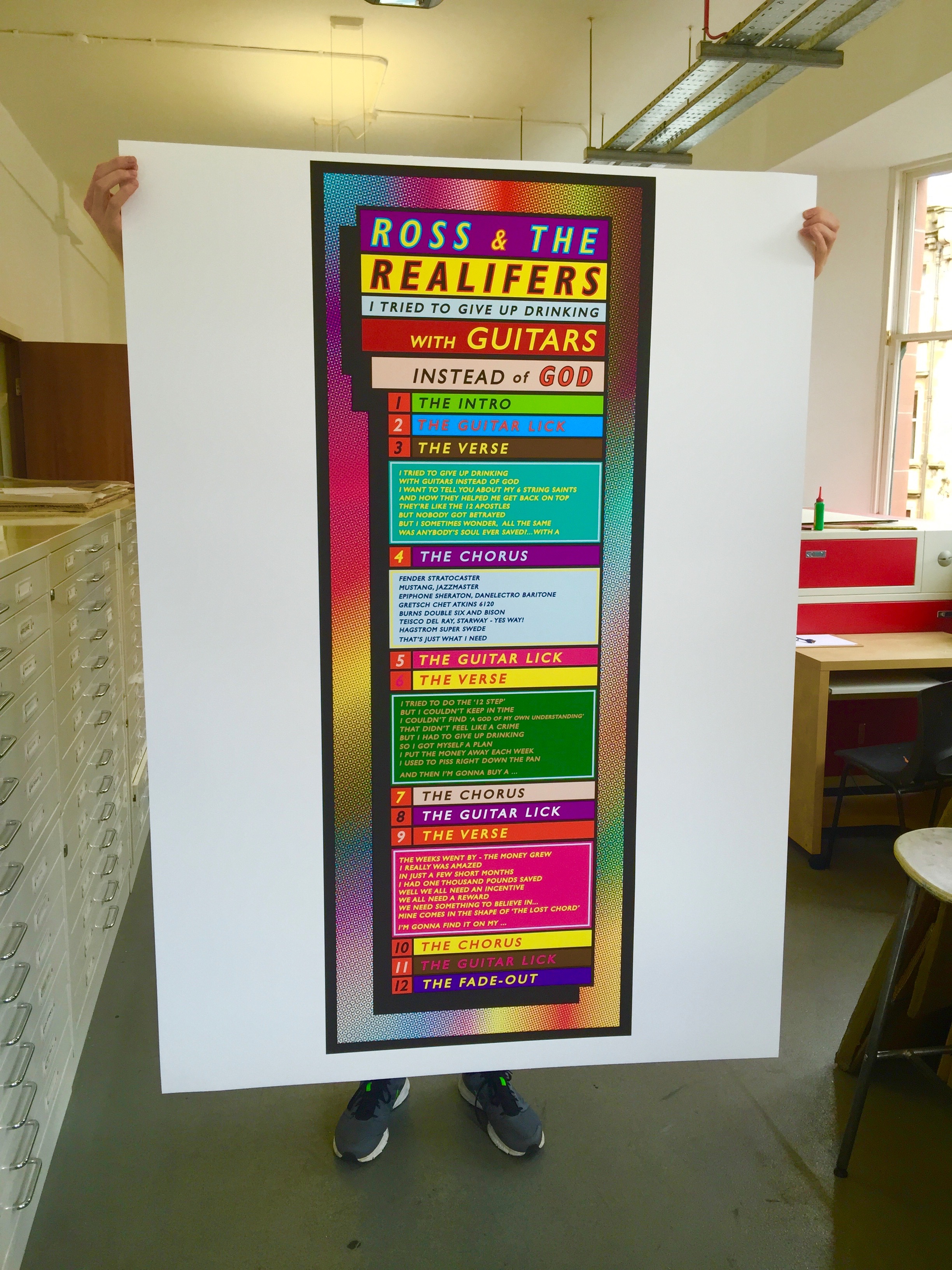 "I Tried to Give Up Drinking with Guitars Instead of God"Sinclair, Ross (2016) "I Tried to Give Up Drinking with Guitars Instead of God". [Artefact] |