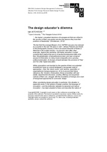 The Design Educator's Dilemma: When Established Institutions Fail to Innovate Their Own CurriculaAitchison, Iain (2016) The Design Educator's Dilemma: When Established Institutions Fail to Innovate Their Own Curricula. In: 20th DMI: Academic Design Management Conference, 22-29 July 2016, Boston, MA, USA. |