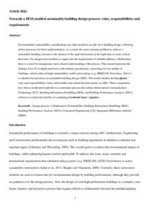 Towards a BIM-enabled sustainable building design process: roles, responsibilities, and requirementsZanni, Maria Angeliki, Soetanto, Robby and Ruikar, Kirti (2016) Towards a BIM-enabled sustainable building design process: roles, responsibilities, and requirements. Architectural Engineering and Design Management, 13 (2). pp. 101-129. ISSN 1752-7589 |