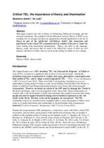 TEL: The importance of theory and theorisationSclater, Madeleine Fiona and Lally, Vic (2016) TEL: The importance of theory and theorisation. In: 10th International Conference on Networked Learning 2016, 9-11 May 2016, Lancaster. |