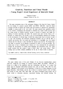 Creativity, Transitions and Virtual Worlds: Young People’s Lived Experiences of Inter-Life IslandSclater, Madeleine Fiona (2016) Creativity, Transitions and Virtual Worlds: Young People’s Lived Experiences of Inter-Life Island. Culture, Biography & Lifelong Learning, 2 (2). pp. 1-16. ISSN 2384-3748 |