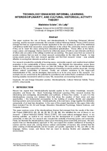 Technology enhanced informal learning, interdisciplinarity, and cultural historical activity theorySclater, Madeleine Fiona and Lally, Victor (2016) Technology enhanced informal learning, interdisciplinarity, and cultural historical activity theory. In: 9th International Conference of Education, Research and Innovation (ICERI), 16-18 November 2017, Seville, Spain. |