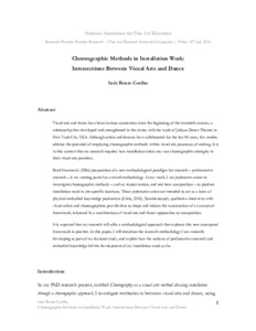 Choreographic Methods in Installation Work: Intersections Between Visual Arts and DanceBento Coelho, Inês (2016) Choreographic Methods in Installation Work: Intersections Between Visual Arts and Dance. In: Research Practice Practice Research: Fine Art Research Network Symposium, National Association for Fine Art Education, 15 July 2016, The University of Cumbria Institute of the Arts. |