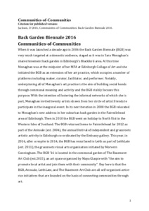 Edinburgh Art Festival, Platform: 2016, invited co-curator.Sinclair, Ross, Maclean, Rachel, Carey, Sorcha and Watson, Mary (2016) Edinburgh Art Festival, Platform: 2016, invited co-curator. 9-11 Blair St. Edinburgh, EH1 1QR, 28 Jul - 28 Aug 2016 [Show/Exhibition] |