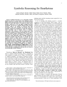 Symbolic Reasoning for HearthstoneStiegler, Andreas, Dahal, Keshav, Maucher, Johannes and Livingstone, Daniel (2018) Symbolic Reasoning for Hearthstone. IEEE Transactions on Computational Intelligence and AI in Games, 10 (2). pp. 113-127. ISSN 1943-068X |