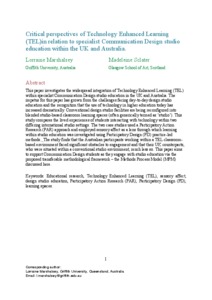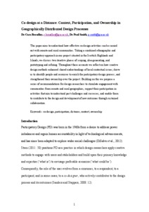 Co-design at a Distance: Context, Participation, and Ownership in Geographically Distributed Design ProcessesBroadley, Cara and Smith, Paul (2018) Co-design at a Distance: Context, Participation, and Ownership in Geographically Distributed Design Processes. The Design Journal, 21 (3). pp. 395-415. ISSN 1460-6925 |