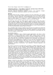 Modernising Glasgow – Tower Blocks, Motorways, and New Towns 1940-2010Urban, Florian (2018) Modernising Glasgow – Tower Blocks, Motorways, and New Towns 1940-2010. The Journal of Architecture, 23 (2). pp. 265-309. ISSN 1360-2365 |