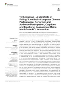 “Enheduanna—A Manifesto of Falling” Live Brain-Computer Cinema Performance: Performer and Audience Participation, Cognition and Emotional Engagement Using Multi-Brain BCI InteractionZioga, Polina, Pollick, Frank, Ma, Eunice, Chapman, Paul and Stefanov, Kristian (2018) “Enheduanna—A Manifesto of Falling” Live Brain-Computer Cinema Performance: Performer and Audience Participation, Cognition and Emotional Engagement Using Multi-Brain BCI Interaction. Frontiers in Neuroscience, 12. ISSN 1662-453X |