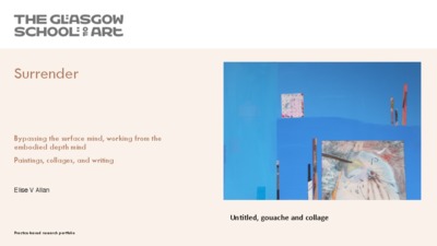 Surrender: Elise Allan Research PortfolioAllan, Elise (2018) Surrender: Elise Allan Research Portfolio. The Glasgow School of Art. |
