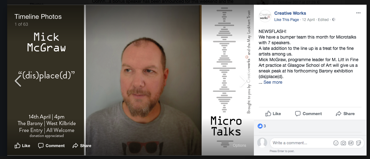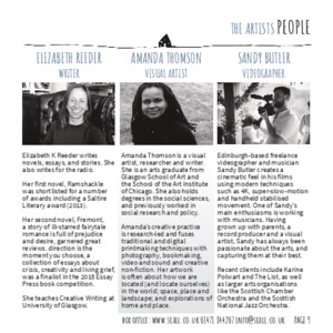 On landscape, people and place - in conversation with Elizabeth ReederThomson, Amanda (2018) On landscape, people and place - in conversation with Elizabeth Reeder. Sligachan Hotel, Sligachan, Skye, 26 November 2018 [Show/Exhibition] |