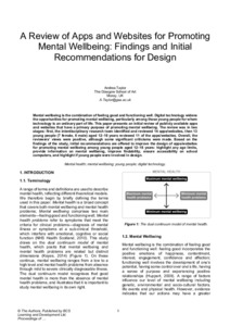 A Review of Apps and Websites for Promoting Mental Wellbeing: Findings and Initial Recommendations for DesignTaylor, Andrea (2018) A Review of Apps and Websites for Promoting Mental Wellbeing: Findings and Initial Recommendations for Design. In: 32nd International BCS Human Computer Interaction Conference (HCI), 2-6 July 2018, Belfast, Northern Ireland. |