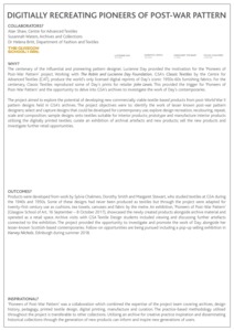 The Cloth: Fashion, Textiles and Art - Examining Intersecting Visual Practice, 1983-1987Britt, Helena (2018) The Cloth: Fashion, Textiles and Art - Examining Intersecting Visual Practice, 1983-1987. In: Fashion, Costume and Visual Cultures (FCVC 2018), 17-19 July 2018, University of Zagreb, Faculty of Textile Technology.Item availability may be restricted. |
